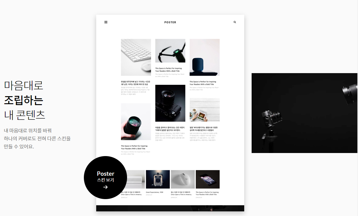 다양한 테마를 지원해서 디자인을 꾸밀 수 있지만 어느정도 관련 지식이 있어야 하기 때문에 쉽게 다가설 수 없었는데요.