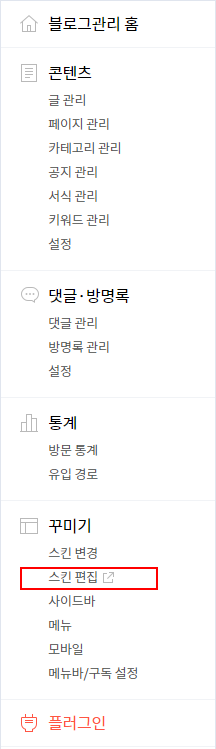 Step 1. 블로그 관리자에서 '꾸미기 > 스킨편집'을 들어갑니다.