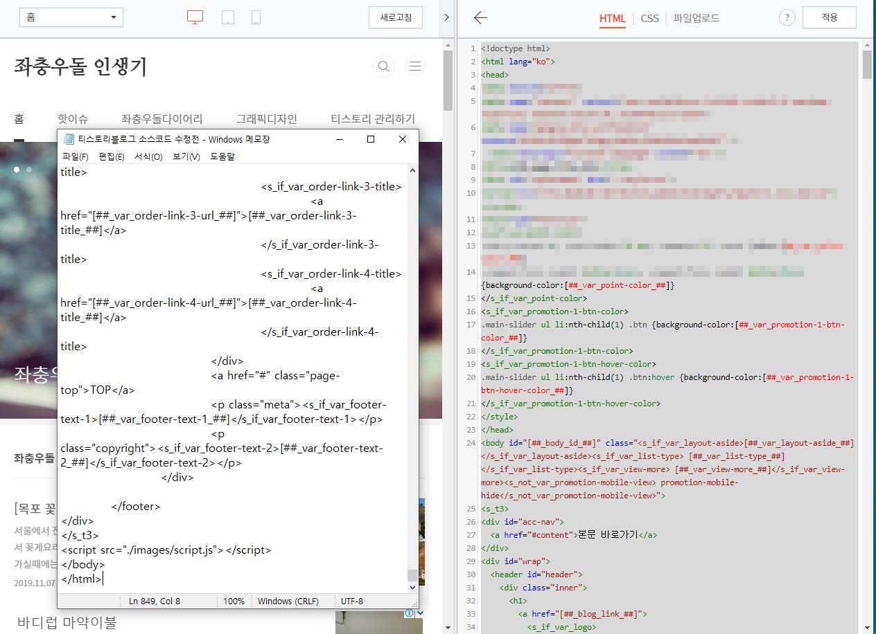 혹시라도 코드 수정후에 문제가 생기면 Step3. 에서 저장한 메모장 문서를 그대로 복사 후 티스토리 html에 붙여넣기 하시면 됩니다.