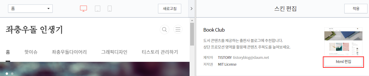 Step2. 'html 편집'으로 이동합니다.
