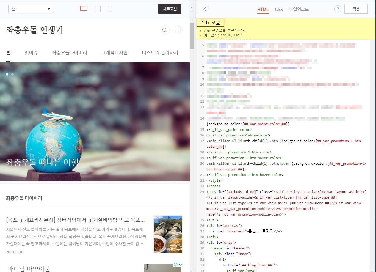Step4. 애드센스를 추가할 부분을 찾습니다. 저는 댓글 밑에 추가 할 예정이므로 'Ctrl+F' 로 댓글을 검색했습니다.