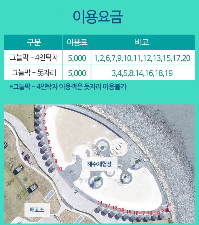 배곧 한울공원 해수풀장 그늘막 이용안내
