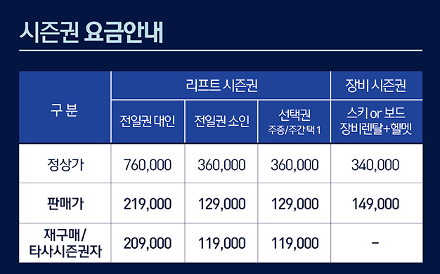 오크밸리 및 알펜시아 스키장 시즌권 판매 안내