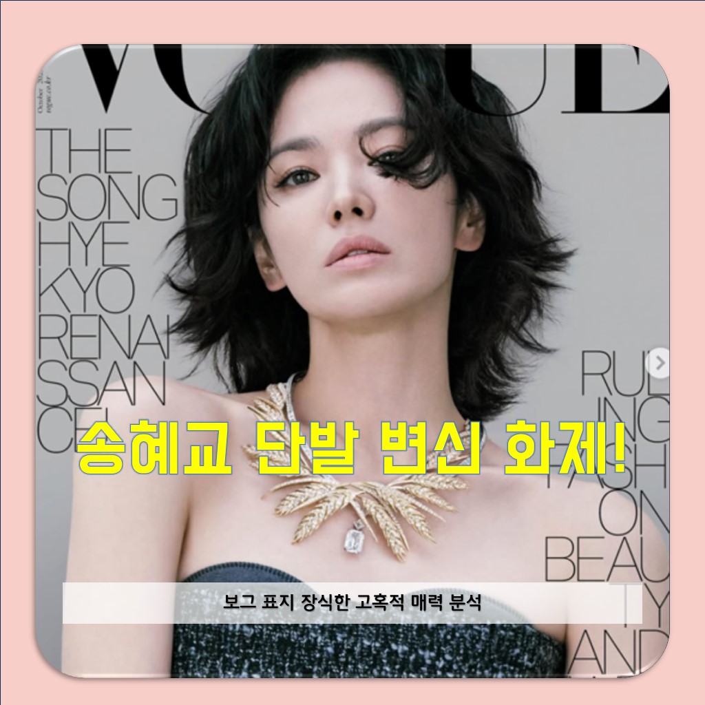 송혜교가 패션 매거진 보그 코리아 10월호 커버를 장식하며 강렬한 존재감을 드러냈습니다. 이번 화보에서 그녀는 과감한 단발 헤어스타일과 고혹적인 매력을 동시에 선보이며 독보적인 콘셉트를 완벽하게 표현해냈습니다.