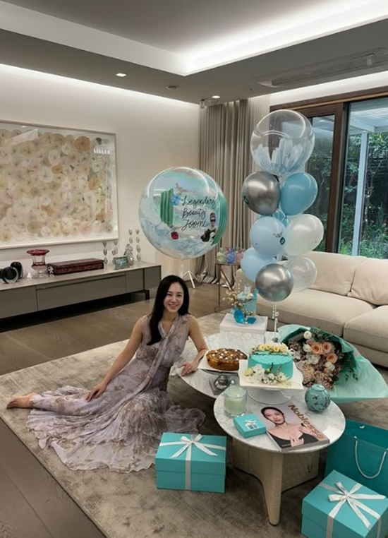 공개된 사진에는 'Legendary Beauty Joomi'라고 적힌 대형 풍선과 함께 티파니 블루 톤의 케이크, 화려한 꽃다발, 선물 상자들이 가득 차 있어 마치 갤러리를 연상케 하는 고급스러운 분위기를 연출했습니다. 세련된 인테리어와 조명이 어우러진 박주미의 자택은 청담동 사모님의 품격을 그대로 보여주었습니다