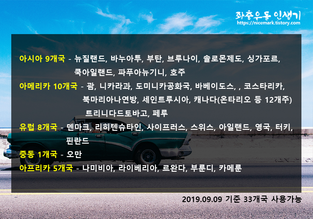 영문 운전면허증 사용가능 국가 - 33개국