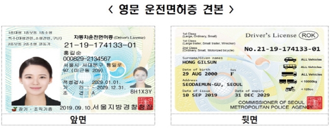 영문 운전면허증 견본