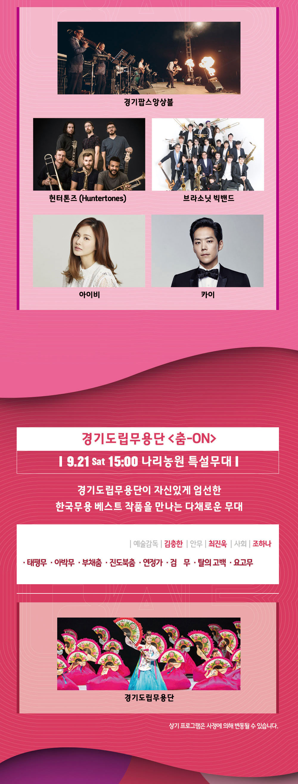 출연진 - 경기팝스앙상블, 헌터론즈, 브라소닛 빅밴드, 아이비, 카이